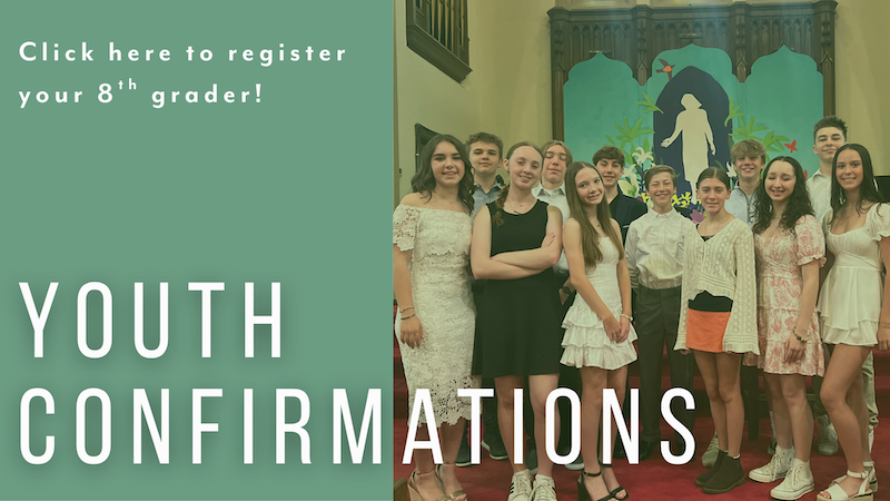 Register your 8th grade student for Confirmation 2026! Orientation will be on Sunday, December 7 at 12:15PM in the Youth Room. Confirmation Sunday will be on April 26, 2026.