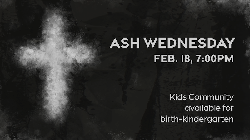 Join us on Ash Wednesday to sing, read scripture, partake in reflective silence and receive the ashes. Kids Community will be provided for children ages birth-kindergarten.